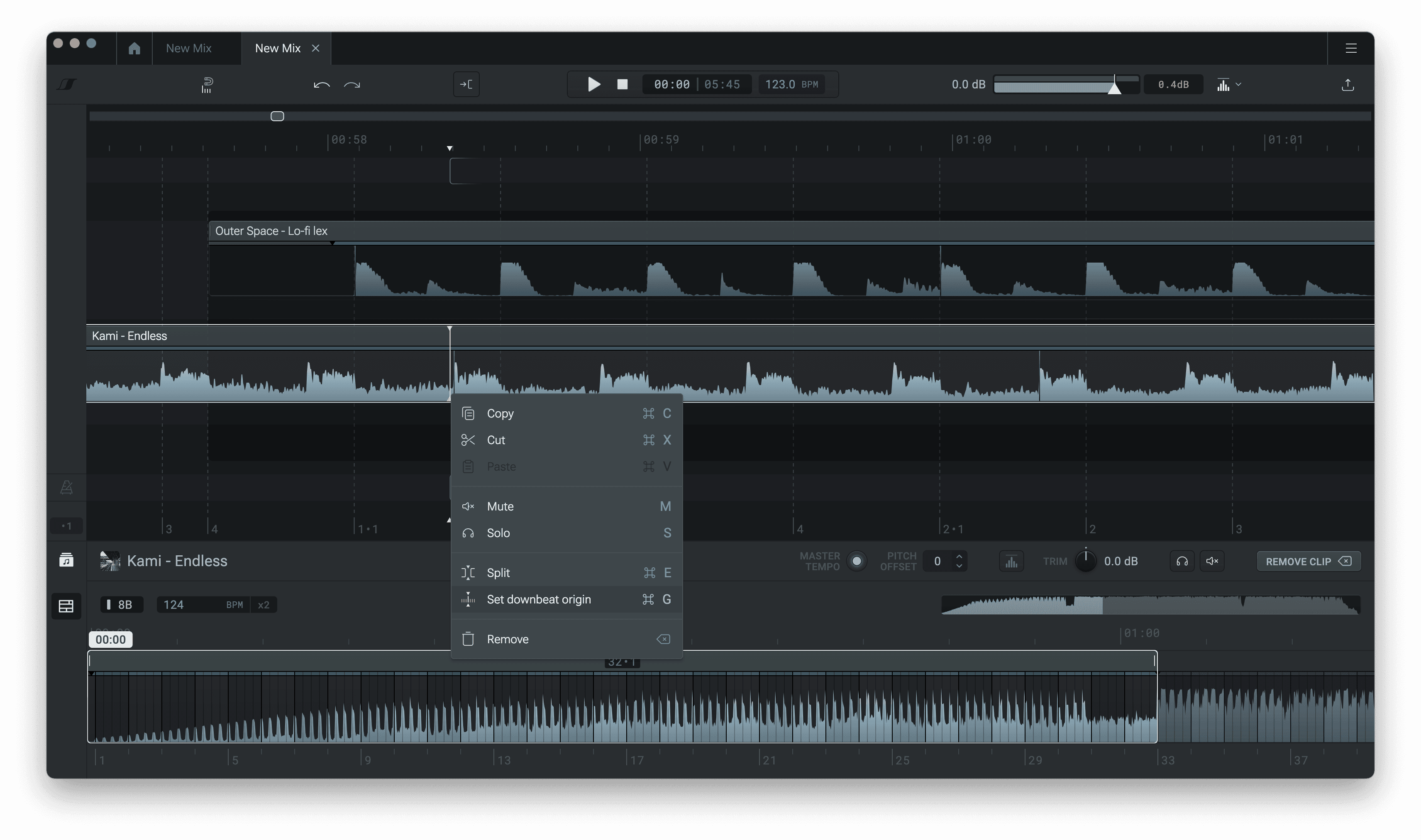 To fix this, you’ll need to manually set the correct BPM for the song. First, select the clip and go to the bottom panel.
